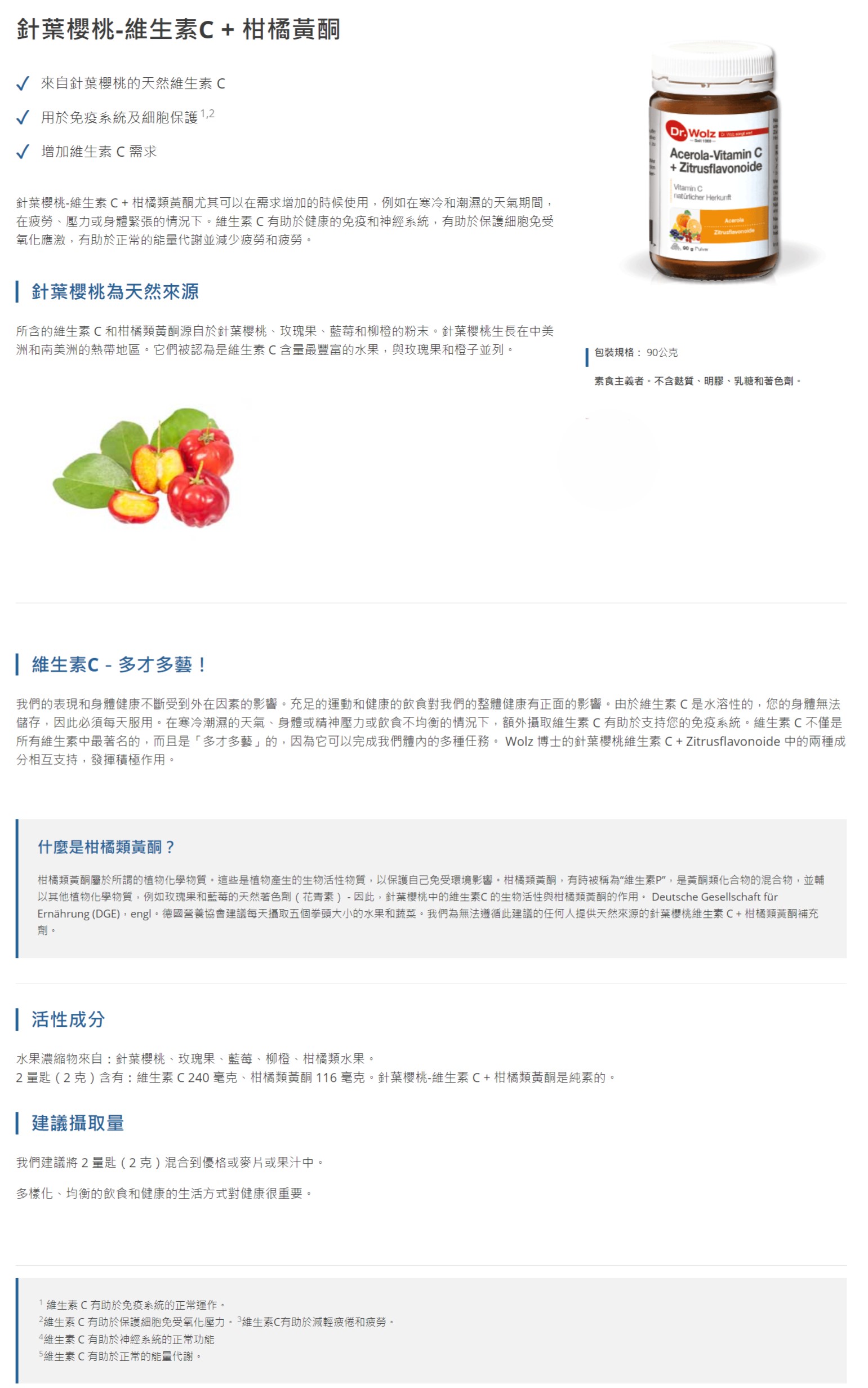 Dr.Wolz 針葉櫻桃-維生素C + 柑橘類黃酮 90g